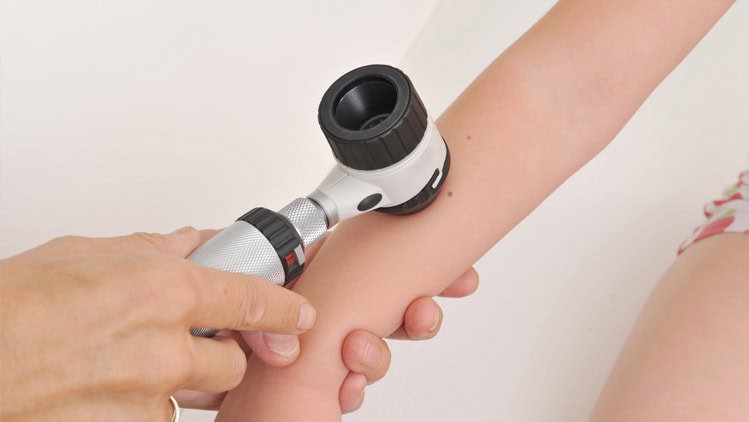 A dermatoscopia é um exame realizado no consultório que auxilia no diagnóstico de doenças da pele, principalmente tumores e câncer de pele, além de alterações do couro cabeludo.